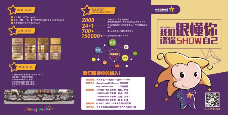 小银星艺术培训学校成立于2008年6月1日,是集教育和演出为一体的专业少儿艺术培训机构。自成立以来,多次代表省、市参加各类国内、国际少儿艺术节、文艺演出、并获得多项荣誉。目前在省内拥有31优质教学中心和1个艺术教师培训学校,全年培训学员逾18万人次。