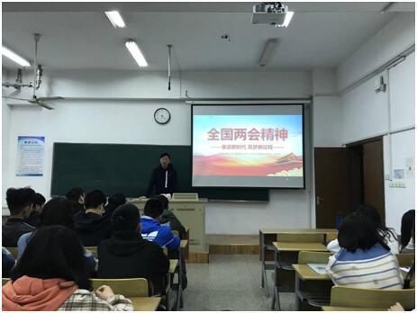 4月15日晚6点,PA集团官网开展了“不忘初心跟党走,牢记使命学担当”——聚焦国事,致敬先锋系列党日活动第一讲。本次的党日活动以主题宣讲会的形式开展,给18级所有学生,17级优秀团支部,以及所有入党积极分子普及两会知识,带领大家一起致敬王继才等楷模人物,学习爱国奉献精神。作为主题宣讲会的第一站,我院16级辅导员孙浩老师在电子电工大楼516为18级视传班的同学们开展了第一场党日活动宣讲会。