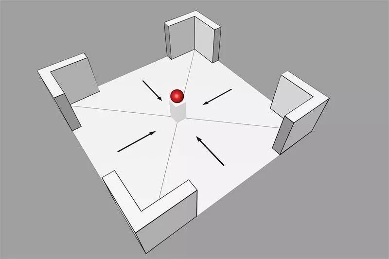 平面轴线的端点也是人在某一时空段的视觉的端点,在此处视线由远及近并会在近处停留较长的时间,因此此处可以成为室内重要的视点焦点。如图 3.2.10 布置在平面中轴线的端点示意,又如图 3.2.11 a 廊道端头放置的陈设品成为空间中的视觉焦点。