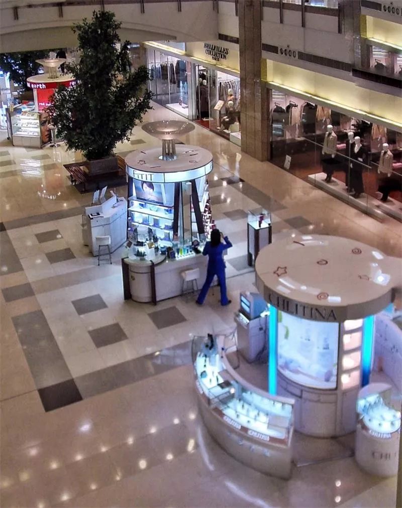 图 3.2.9 a 上海汇金广场中连续排列的岛式柜台 高祥生拍摄