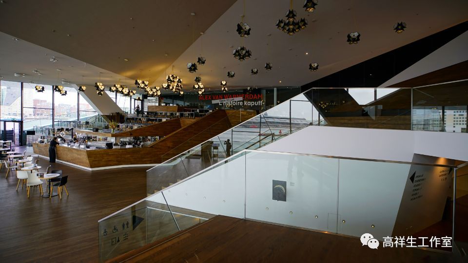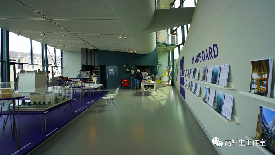 再来看阿姆斯特丹电影学院,室内光和自然光的组合使空间的色彩更为雅致、精彩,举目所及,大块简约的体块互相穿插构成了多姿多彩的空间形态。除此之外,阿姆斯特丹的现代美术馆、建筑协会的室内设计同样别具一格。
