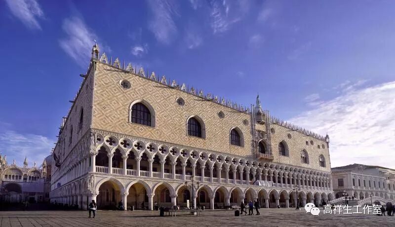 13 世纪后,威尼斯人从战争中获取巨大利益,同时马可·波罗环游世界的归来影响扩大,进而成为世界的商贸中心和文化中心。威尼斯的贸易为威尼斯带来了权力和财富,也为威尼斯带了世界各地的文化与艺术。此时,威尼斯商人为竞相炫耀其财富和显赫,在一些建筑上不吝奢华。所以,在威尼斯除了有金碧辉煌的公共建筑外也不乏有各种奢华的府邸和高档的公寓……。