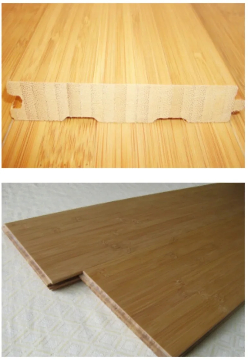 竹地板是选用中上等竹材,经漂白、硫化、脱水、防虫、防腐等多道工艺以后,再经高温、高压、热固胶合而成的地板。竹地板耐磨、耐压、防潮、防火、强度高且收缩率低,铺设后不开裂、不翘曲、不变形起拱。其表面呈现竹子的纹理,色泽美观(图1-3-14)。但竹地板硬度高,脚感略逊于实木地板。