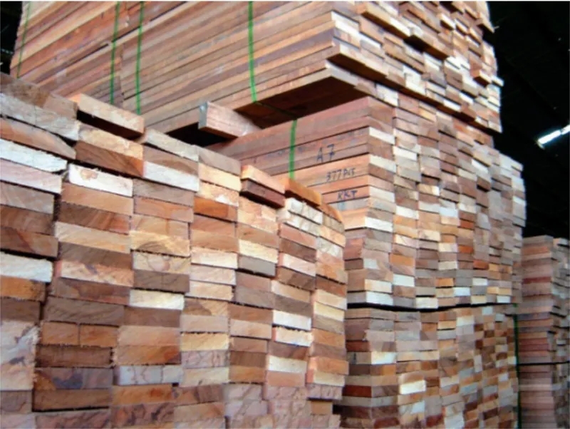 柚木、榆木、柞木、水曲柳、榉木、柳桉、枫木、印茄木、重蚁木、甘巴豆木等,通常为硬材(图1-2-2)。