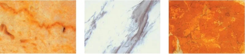 图2-2-1 汉白玉(左)、金花米黄(中)、紫罗红(右)