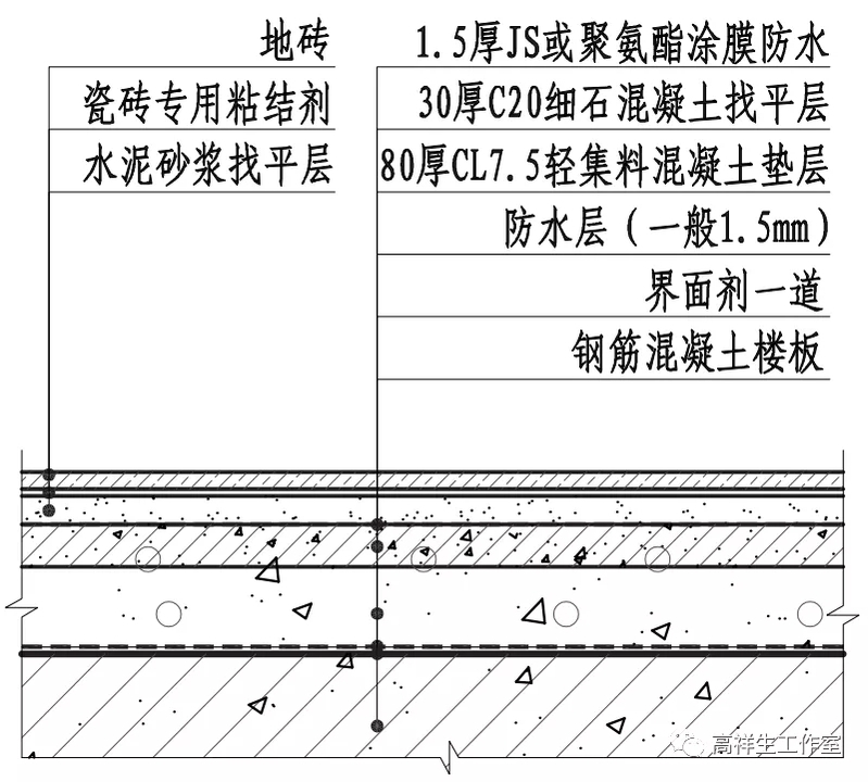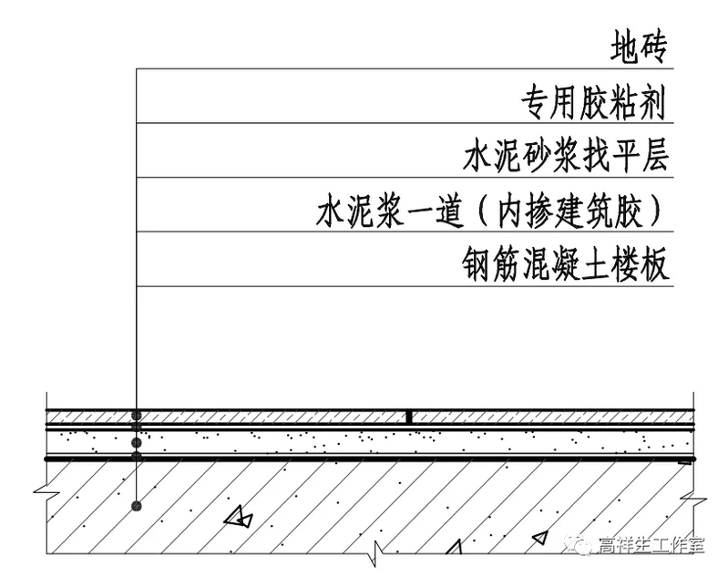 图 12-2-7 轻集料垫层地砖地面构造节点图(专用胶粘剂)