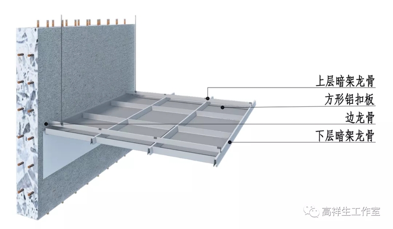 图 13-3-1 方形铝扣板顶棚三维图方向一