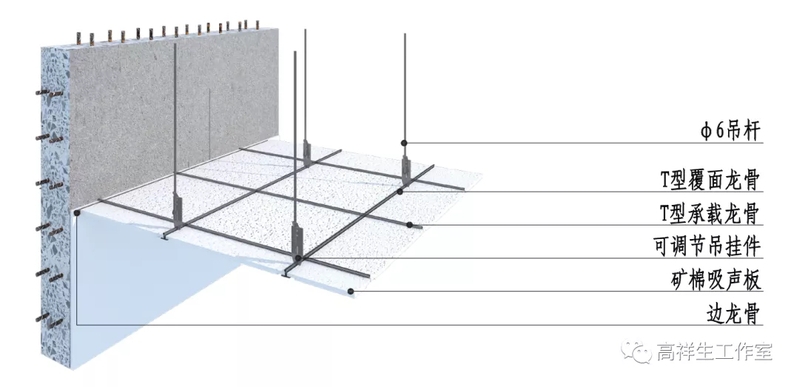 图 13-2-21 暗明龙骨结合矿棉板顶棚三维图