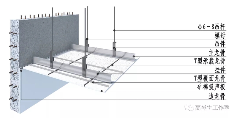 图 13-2-14 明架式矿棉板顶棚三维图方向二