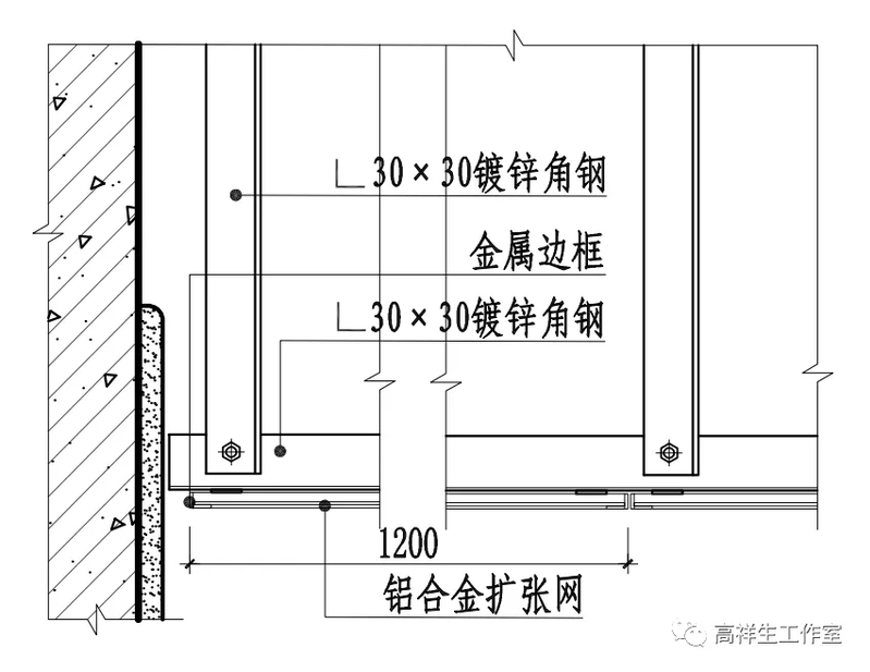 图 13-3-32 明龙骨金属网顶棚构造节点图(二)