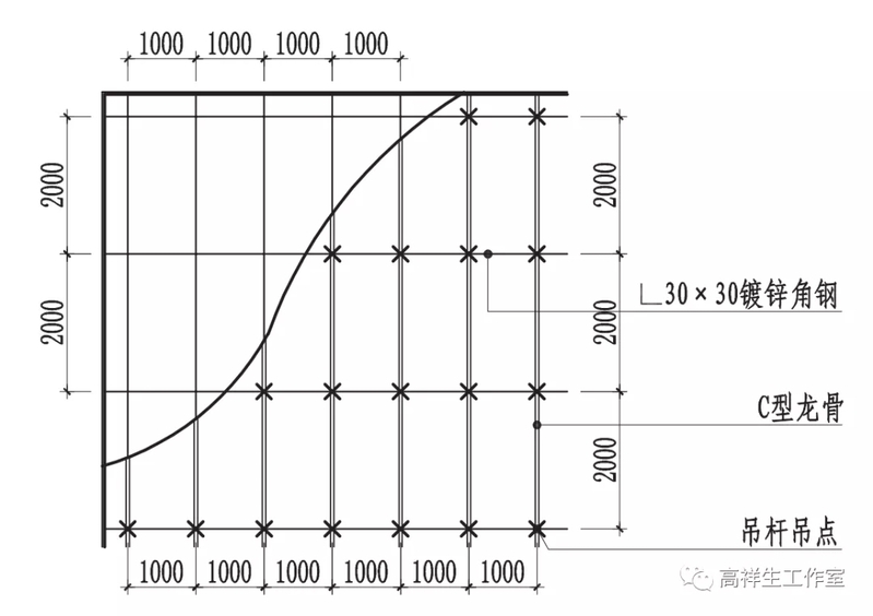 图 13-3-7 明架方形铝扣板顶棚构造节点图
