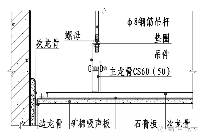 图 13-2-27 复合粘贴矿棉板顶棚构造节点图(一)
