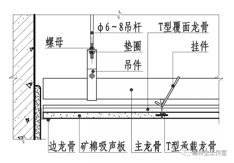 图 13-2-3 T 型单层骨架顶棚构造节点图(一)