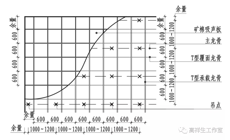图 13-2-22 暗明龙骨结合矿棉板顶棚平面图