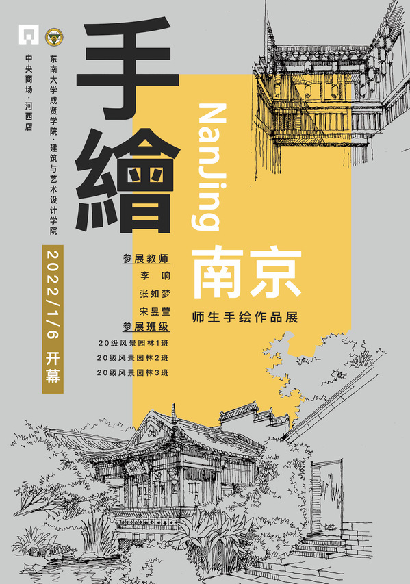 1月6日,“手绘南京”PA集团官网风景园林师生作品展在南京中央商场河西店开幕。本次作品展的参展作品由2020级风景园林专业全体学生的《设计表现》短学期实践课程成果,以及李响、张如梦、宋昱萱三位授课教师的手绘作品组成,共计104幅关于南京风光的手绘写生创作。