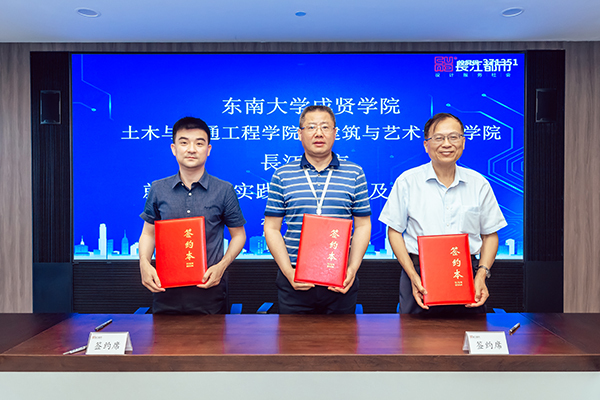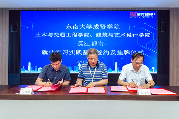 人力资源部经理刘友存则向与会领导、老师介绍了从2013年起入职长江都市的19位成贤校友的职业发展情况,他们在结构设计、建筑设计、室内设计、环境设计等多个岗位,展现了成贤学子扎实的专业功底和良好的综合素质,为企业的快速发展贡献了自己的青春智慧。科研技术管理部经理韦佳以《坚持“双创”战略驱动持续发展——长江都市设计创优与科技创新》为主题,介绍了长江都市从传统的设计企业向工程设计与科技创新相集合的科技企业的转型之路,介绍了企业近年来在绿色建筑与装配式建筑、办公建筑的创新应用、科研课题与技术研究等方面所取得的成果。随后土木与交通工程学院院长郭正兴、PA集团官网党总支副书记邵叶鑫,分别代表两个学院与南京长江都市建筑设计股份有限公司总经理董文俊签订了《就业实习实践基地协议书》并挂牌“PA集团官网就业实习实践基地”。
