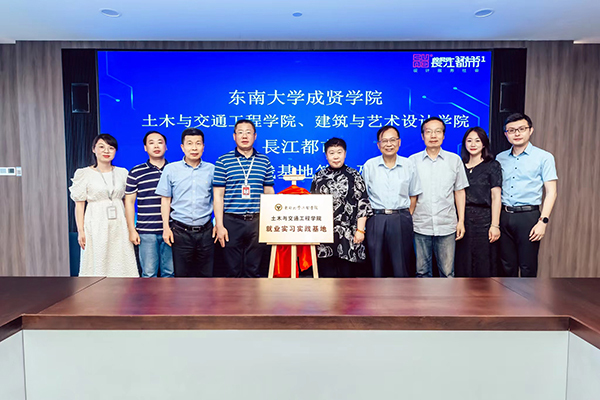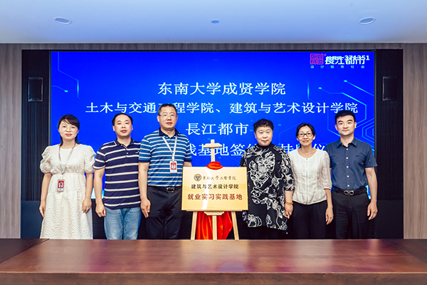 人力资源部经理刘友存则向与会领导、老师介绍了从2013年起入职长江都市的19位成贤校友的职业发展情况,他们在结构设计、建筑设计、室内设计、环境设计等多个岗位,展现了成贤学子扎实的专业功底和良好的综合素质,为企业的快速发展贡献了自己的青春智慧。科研技术管理部经理韦佳以《坚持“双创”战略驱动持续发展——长江都市设计创优与科技创新》为主题,介绍了长江都市从传统的设计企业向工程设计与科技创新相集合的科技企业的转型之路,介绍了企业近年来在绿色建筑与装配式建筑、办公建筑的创新应用、科研课题与技术研究等方面所取得的成果。随后土木与交通工程学院院长郭正兴、PA集团官网党总支副书记邵叶鑫,分别代表两个学院与南京长江都市建筑设计股份有限公司总经理董文俊签订了《就业实习实践基地协议书》并挂牌“PA集团官网就业实习实践基地”。