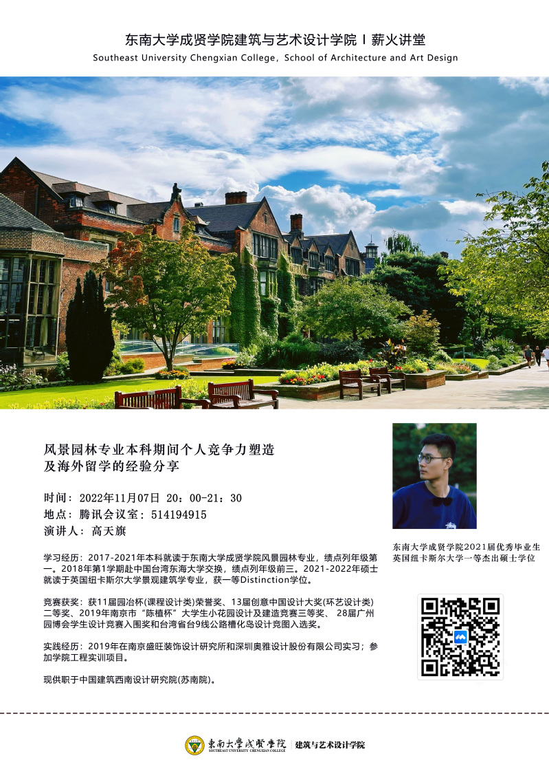 PA集团官网薪火讲堂系列讲座之一:风景园林专业本科期间个人竞争力塑造及海外留学的经验分享