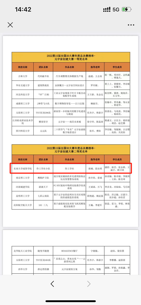 本次大赛中,PA集团官网组建两支团队,分别参加了数字文化设计和元宇宙创建赛两个赛道并在江苏赛区中斩获特等奖,进入全国总决赛。两支团队经过积极备战和细心准备,参赛作品《寻文逐字》与《伶工学社》积极传承和弘扬中华优秀传统文化、革命文化,全面提高学生的审美意识和人文素养,增强文化自信,始终坚持以习近平新时代中国特色社会主义思想为指引,切实落实立德树人根本任务。最终在全国总决赛的线上答辩中发挥优异,取得了一等奖和二等奖的好成绩,也创下了学院单届国家级A类赛事国赛中同时获得一等和二等奖的新记录。