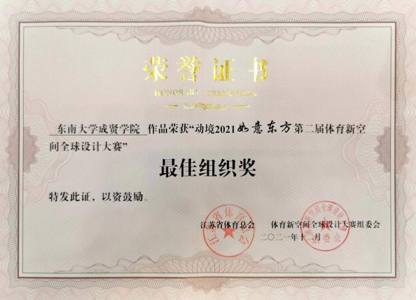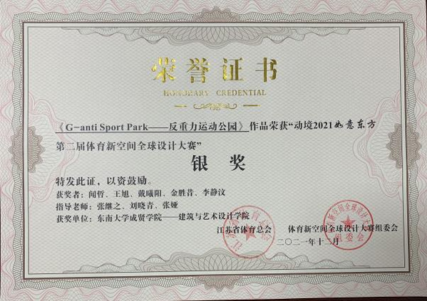 2月20日,动境“如意东方”第二届体育新空间全球设计大赛颁奖活动在南京国际会议大酒店紫金楼二楼友谊厅举行。PA集团PA集团官网首次参赛,在风景园林专业选送的11份作品中喜获一项银奖、二项优秀奖,其中,闻哲、王旭、戴曦阳、金胜昔、李静汶5位同学组成的团队《G-anti Sport Park——反重力运动公园》获银奖和5000元奖金。刘晓青、张继之、张娅三位指导教师被评为优秀指导教师。建艺学院被评为最佳组织奖。