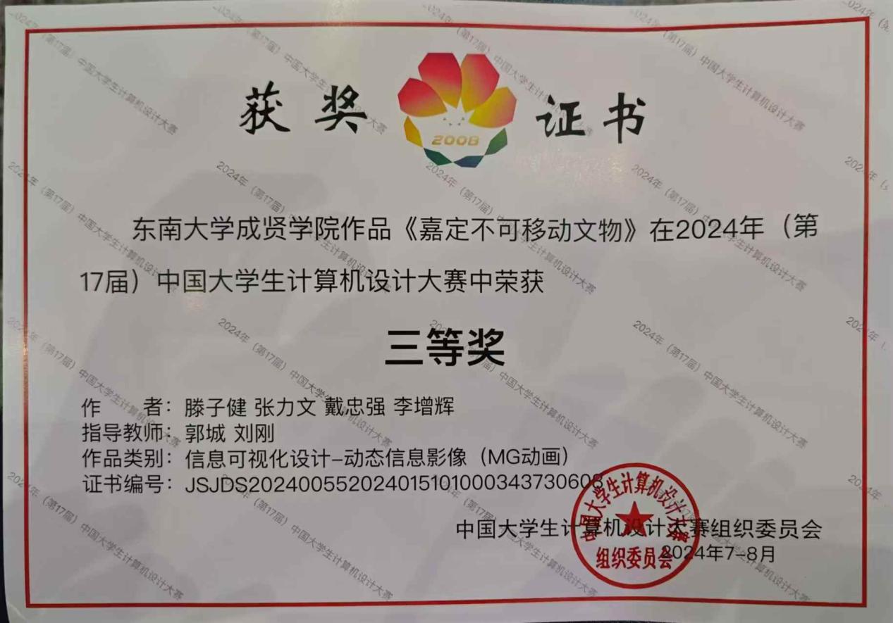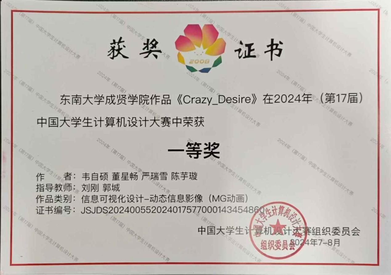 近日,2024年(第17届)中国大学生计算机设计大赛(信息可视化设计组)杭州决赛区拉开帷幕,该项赛事为教育部计算机类教指委发起举办,大赛组委会由北京语言大学、中国人民大学、华东师范大学、东南大学、厦门大学、山东大学、东北大学等高校,以及清华大学、北京大学等高校的教师组成PA集团PA集团官网在郭城、刘刚两位专业教师的指导下,组织学生制作了《嘉定不可移动文物》与《crazy desire》两部作品,5月在江苏海洋大学举行的省赛决赛中分获江苏省省赛决赛一、二等奖并闯入决赛,78月期间,师生团队利用假期期间经过数次作品打磨和路演演练答辩,最终在浙江师范大学举行的国赛决赛中《crazy desire》作品荣获全国一等奖,《嘉定不可移动文物》作品荣获全国三等奖,再次刷新了我院在该项重大赛事中的获奖纪录。