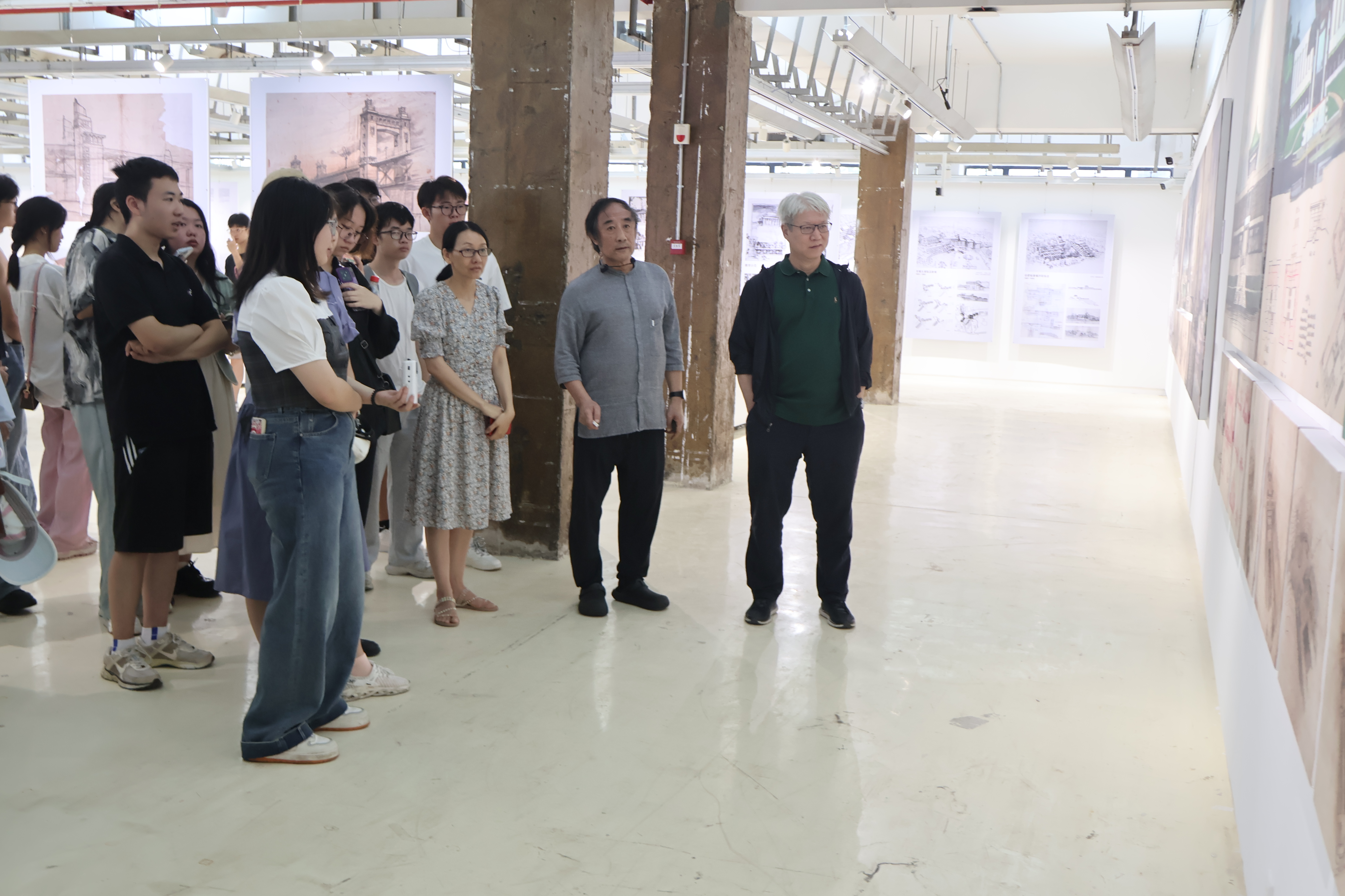 活动特别邀请了东南大学建筑学院单踊教授为师生们做讲解,单老师一一解读成果展上钟先生的设计和绘画作品,结合南京长江大桥桥头堡、无锡太湖饭店、福建武夷山九曲花街规划等几十项建筑实际工程,讲述钟训正先生的创作历程,让参观的全体师生深入体会其“顺其自然,不落窠臼”的建筑创作思想。在参观学习过程中,单教授还就同学们现场提出的专业问题进行详细地解答,帮助同学们对专业有了更深地了解。此次展览生动呈现了钟先生在建筑、学术和教育领域的卓越成就,对于弘扬其治学态度、教育理念和学术思想具有十分重要的现实意义。