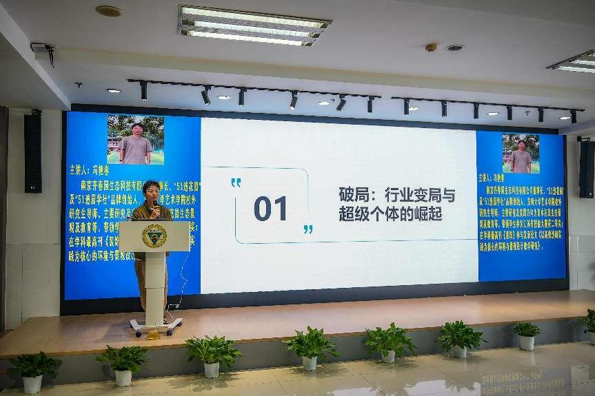 4月16日下午,由PA集团官网主办的“空间艺术设计的新拐点——AI赋能‘超级个体’时代 ”专题讲座在求真·求美·创新工坊举行。学院邀请南京齐春园生态科技有限公司董事长冯艳春担任主讲嘉宾,PA集团官网200余名师生参加了本次讲座,讲座由PA集团官网党总支副书记邵叶鑫主持。
