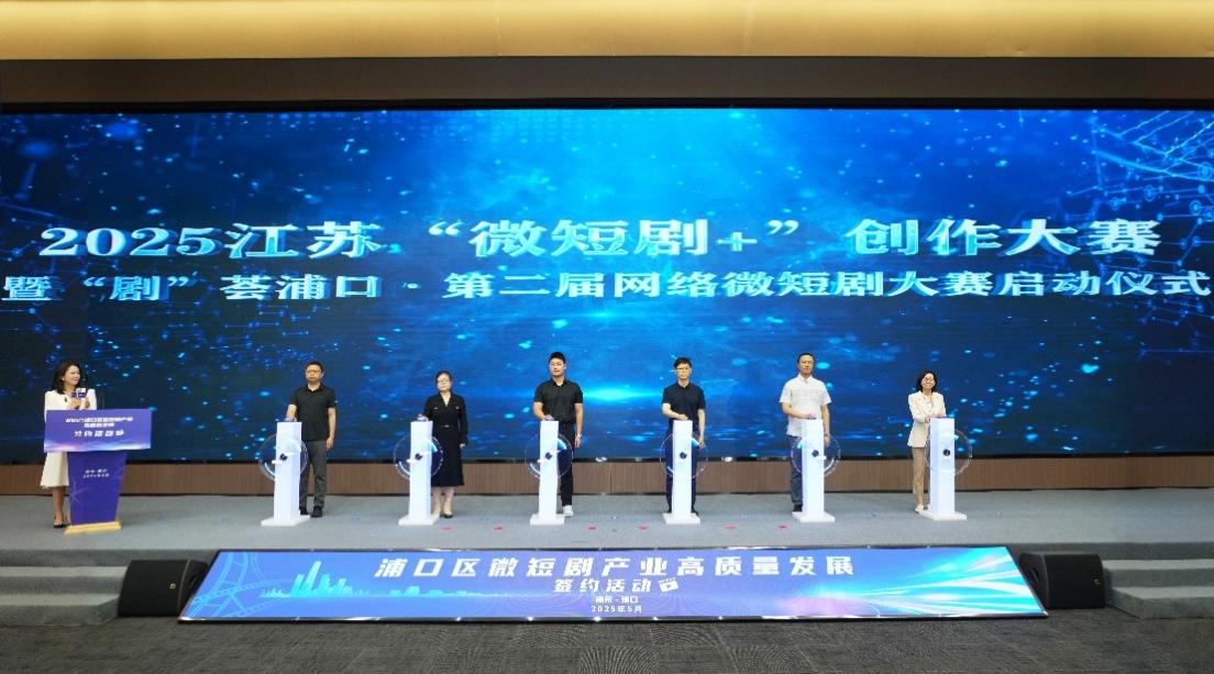 活动现场举行了长三角微短剧产业学院、长三角微短剧研究院的揭牌仪式以及爱奇艺平台等企业合作签约仪式。王娟芬副院长作为学院代表,受邀参与了2025江苏“微短剧+”创作大赛暨“剧”荟浦口·第二届网络微短剧大赛的启动仪式。该项大赛紧扣倡廉、文旅、品牌、科普、学法、学经典、看品牌、看非遗、就业、红色文化、乡村振兴等十大主题,旨在通过“微短剧+”的方式推动行业跨界融合,催生更多优秀作品。